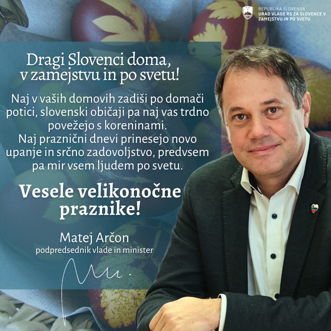Slokult.info April 3, 2026 VELIKONOČNO VOŠČILO PODPREDSEDNIKA VLADE REPUBLIKE SLOVENIJE IN MINISTRA ZA SLOVENCE V ZAMEJSTVU IN PO SVETU MATEJA ARČONA Slokult.info April 3, 2026